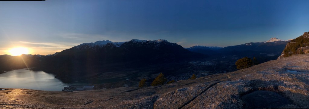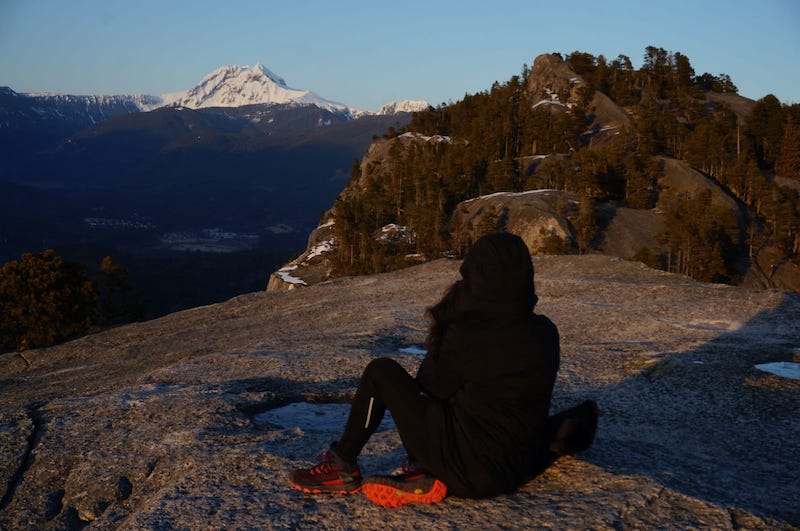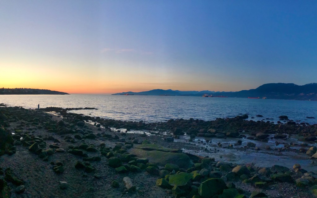 Und natürlich sind in den letzten zwei Wochen auch sehr schöne Dinge passiert. Ich bin mit Bruno nach Squamish gefahren und wir sind den Chief Trail gewandert. Ich habe unglaubliche Panoramen gesehen, habe noch mehr geheult, die schneebedeckten Berge bewundert, in die untergehende Sonne geblinzelt, absolute Stille genossen, das Leben gefeiert, im Dunkeln umsichtig meine Schritte setzend den Abstieg gemeistert. Ich habe mit Ella einen sonnigen Nachmittag im Queen Elizabeth Park im Südosten der Stadt verbracht, habe einige malerische Sonnenuntergänge an meinem Hausstrand in Kitsilano erlebt. Mit Patricia und Carlos bin ich mit dem Bus bis nach Deep Cove gefahren, wir sind zum Quarry Rock und noch weiter gewandert, mit viel mehr Menschen, aber ebenso schönem Ausblick. Beim jährlichen Stair Climb Event der British Columbia Lung Association habe ich einen Tag mit meiner Mitbewohnerin Amanda Freiwilligenarbeit geleistet und etwa 500 Feuerwehrleute aus dem ganzen Land registriert, die anschließend über 40 Stockwerke mit über 50 kg schwerer Ausrüstung erklommen haben, um Spenden zu sammeln. Durch den Lighthouse Park wandernd habe ich doch ernsthaft das erste Mal die Flossen eines Delphinpärchens aus dem Wasser blinzeln sehen, und auch eine Robbe ist da kurz gewesen. Einige Tage vorher wachte ein Weißkopfseeadler am Strand in Kits über den letzten am Horizont verglimmenden Lichtern.